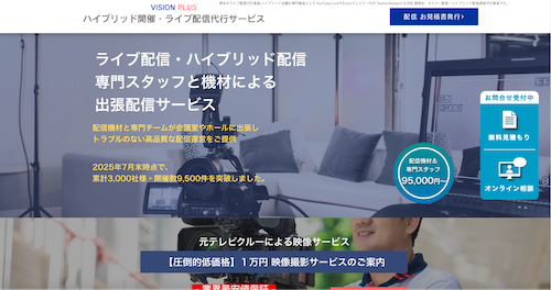 | 株式会社ビデオプロ・シラフジ | ビジネスイベント、結婚式、学校行事 | 出張型ライブ配信 | 全国出張対応、携帯電波を束ねる特殊機材 | 年間1,000回以上 1 | 専門性◎、機材○ |