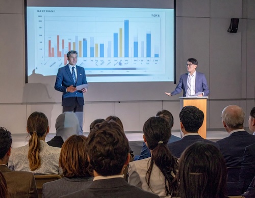 オンラインでは視聴者の集中力が途切れやすいため、1スライドあたりの情報量を絞り、要点を明確にします。複雑な財務データや事業計画は、グラフやインフォグラフィックを効果的に活用し、視覚的に直感的に理解できるように工夫しましょう。