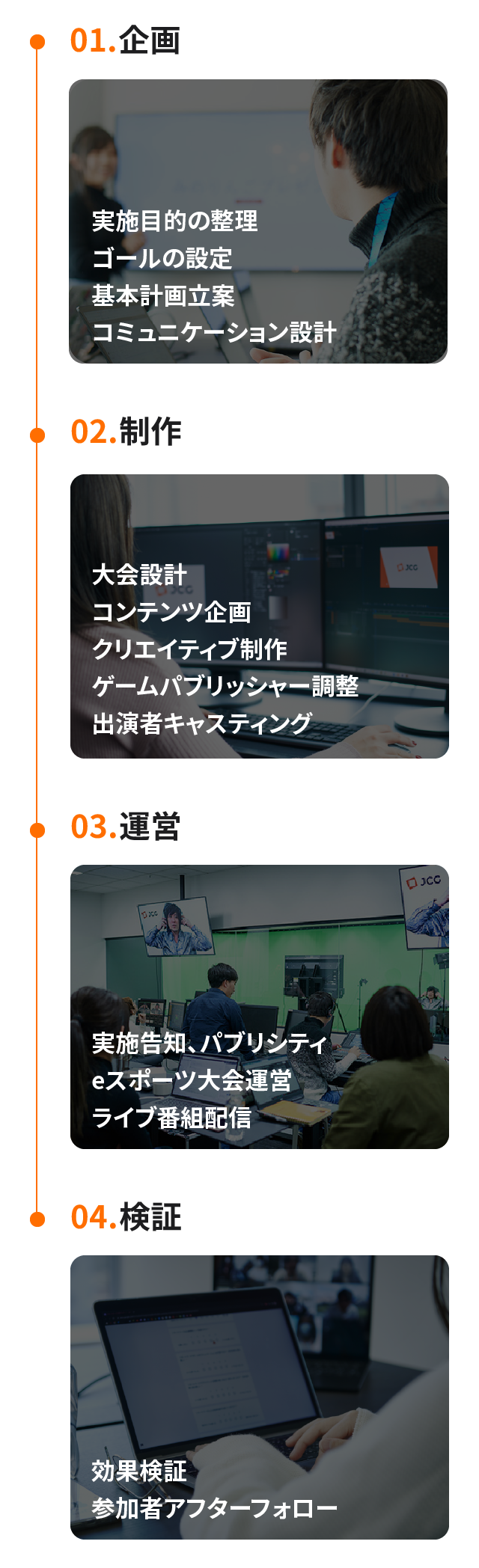 eスポーツは専用の機材や会場が不要なため、お客様自身でも実施可能です。大会運営を簡単に行えるウェブシステムを用いることで、一人で100人が参加する大会も運営が可能になります。「社内運動会に代わるイベントを開催したい」「社内で部活動やサークル活動を始めたい」「社員間の交流を深めたい」そんな希望も、eスポーツなら簡単に実現します!